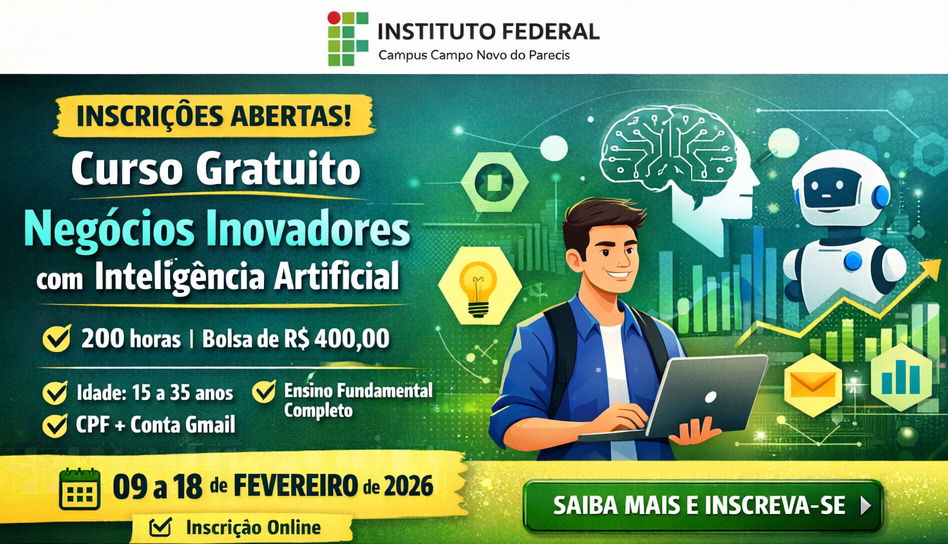 IFMT Campo Novo do Parecis abre inscrições para auxílios e apoio estudantil em 2026